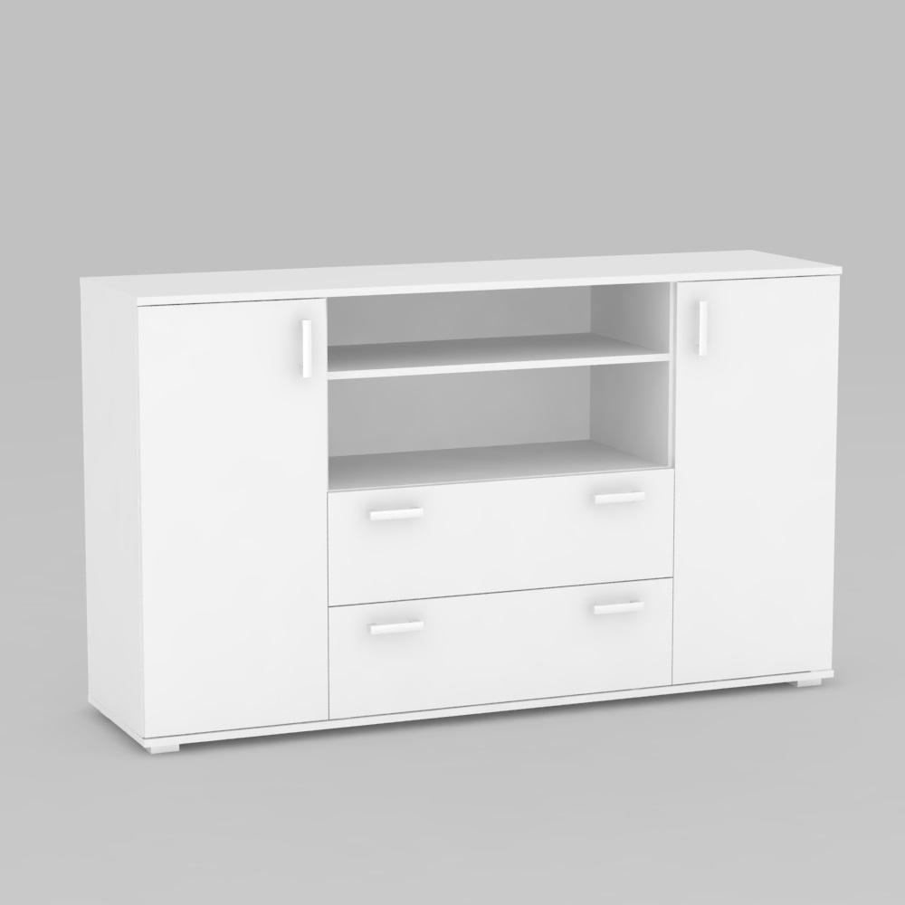 Vnitřní vybavení komody znázorněné v perokresbě, je součástí dodávky a ceny.