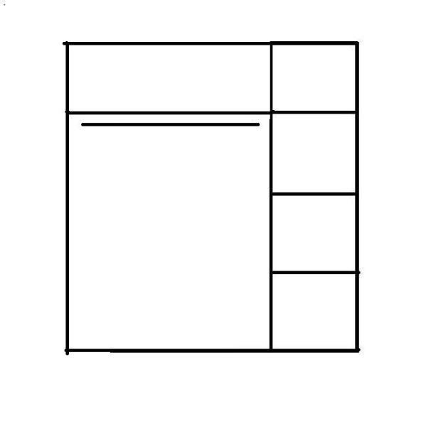 Vnitřní dělení je na věšákovou a policovou část. Součástí jsou police podle nákresu.